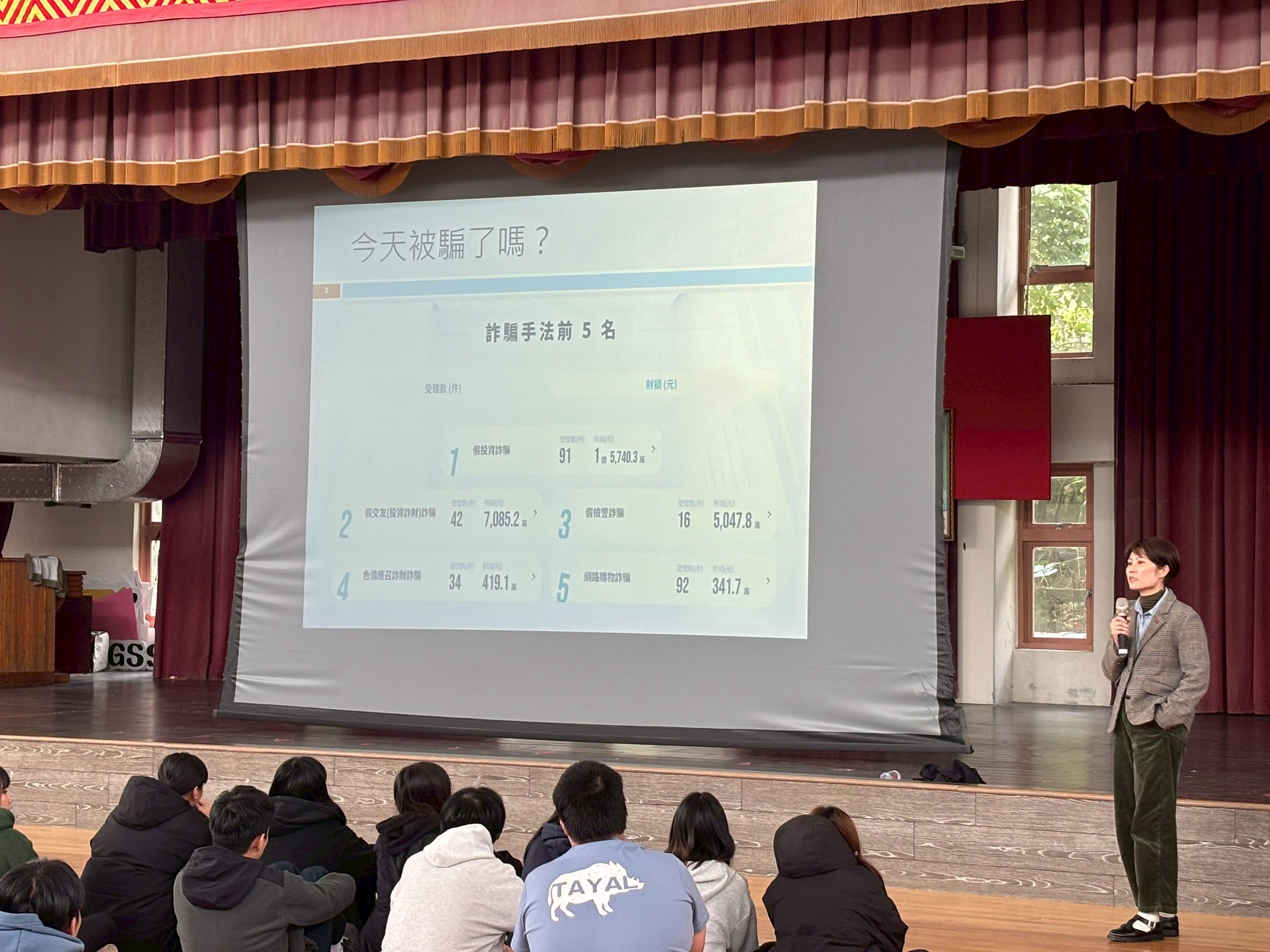 本次很高興能邀請洪維偲律師擔任本次活動的講師,並與同學們分享常見詐騙態樣解析、暴力事件之法律責任說明,以及遭遇相關情形時可運用之法律資源與求助管道,協助學生建立正確法律認知,並強化自我保護能力。
